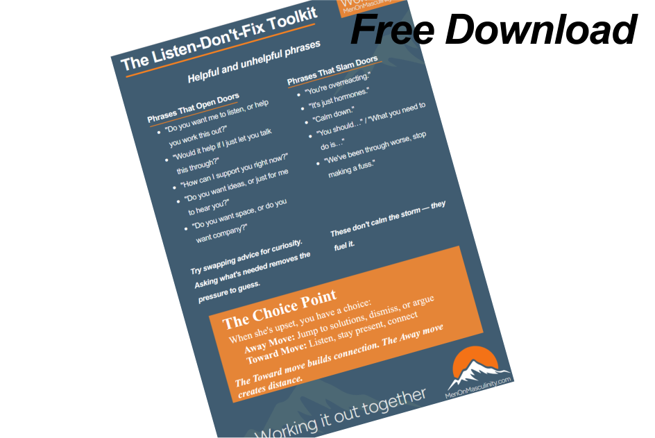 The Listening Not Fixing Toolkit: Learn the "Choice Point" system to pause before reacting, helping you listen with empathy and build genuine connection in your relationships.